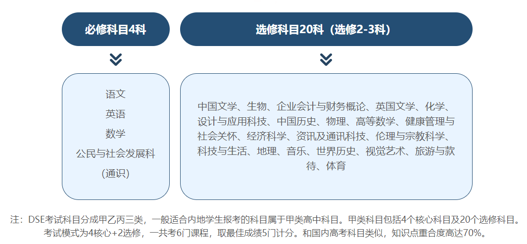 香港中学文凭考试(HongKong Diploma of Secondary Education Examination),缩写为HKDSE,简称DSE考试,是香港教育局于2012年3月起在新学制体系下建立的大学入学选拔考试,由香港考试及评核局(考评局)组织,也被称为“香港高考"是可用中文答题的国际考试。任何国籍的学生均可通过DSE考试申请香港及海外的大学,香港户籍的学生,也可凭 DSE 成绩免试入读内地的大学。